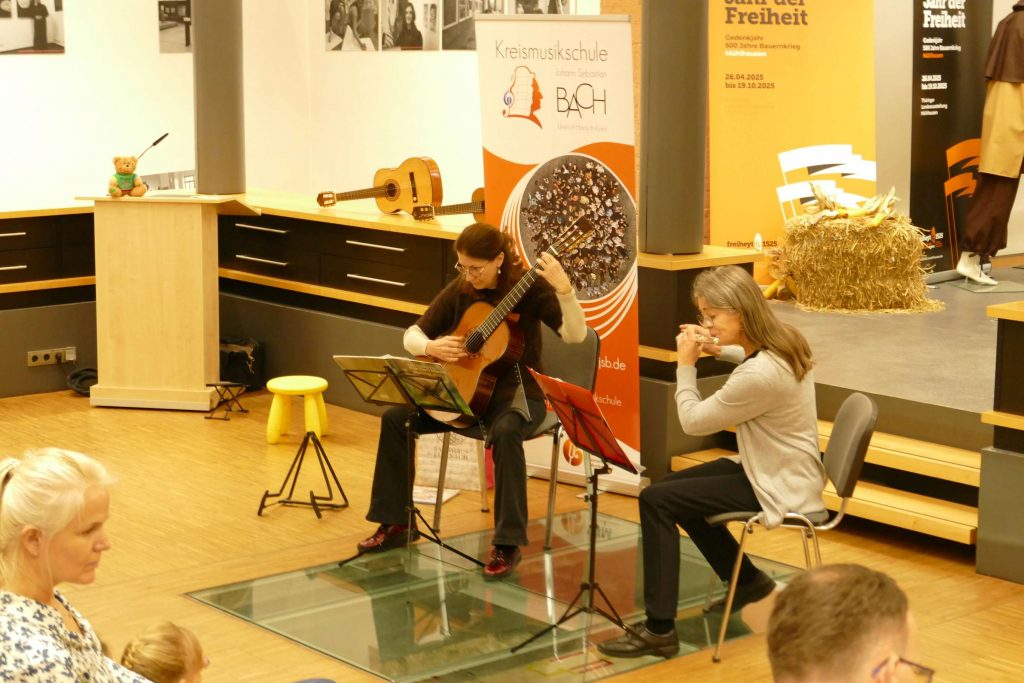 In der Mühlhäuser Stadtbibliothek hatten Kinder und Erwachsene einen schönen, warmen Nachmittag mit Musik. Viele freuten sich, die verschiedenen Instrumente selbst auszuprobieren. Die Stimmung war fröhlich und entspannt, und es kamen viele Besucher. Mit viel Herz leiteten Lehrerin Sigrun Meißner und Stefanie Schünemann die Veranstaltung und spielten auch selbst Musik.